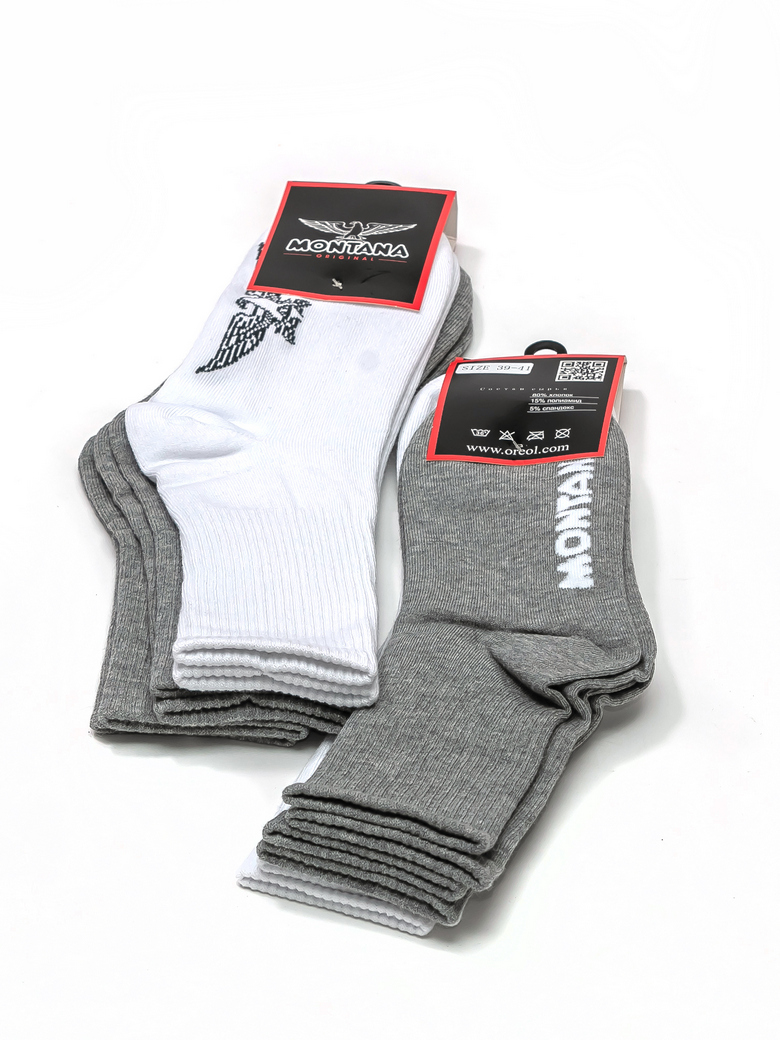 Фирменные мужские носки Montana с удлиненной резинкой, состав 80% хлопок + 15% полиамид + 5% спандекс, в комплекте 3 пары: белые и 2шт серых. Также предлагаются носки Монтана со средней 10283 и с укороченной 10280 резинкой. Наличие уточняйте.