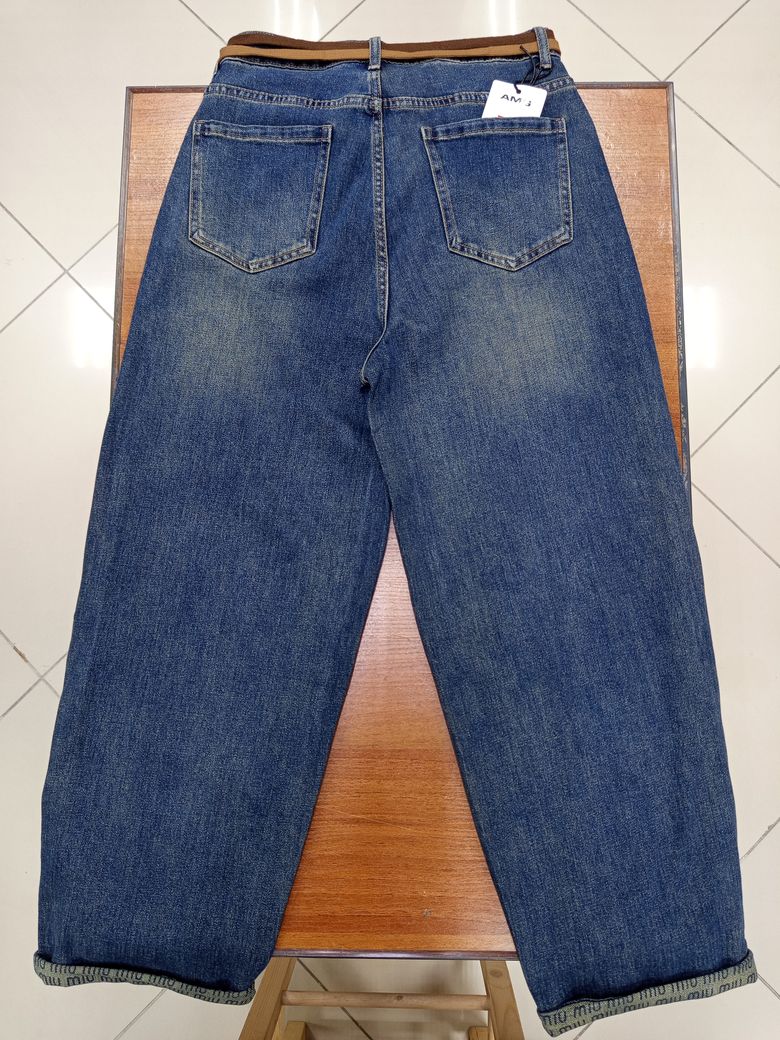 Женские багги джинсы с широкой от бедра и немного зауженной книзу брючиной синего цвета с выраженным эффектом патиновой потертости (с зеленцой), высокая посадка, ткань средней плотности, состав 98% хлопок + 2% лайкра, 5 карманов, длина соответствует 30 ростовке, в комплкете поясок-шнурок. Особенность: подвороты с декоративными написями. Наличие размеров уточняйте.
