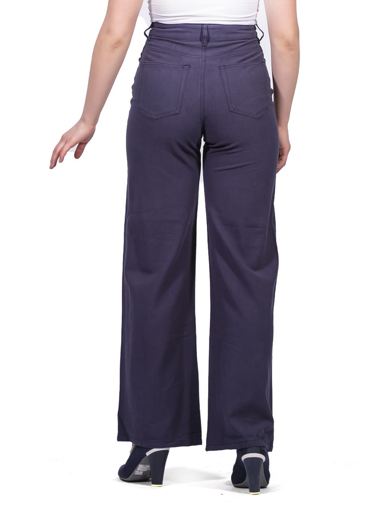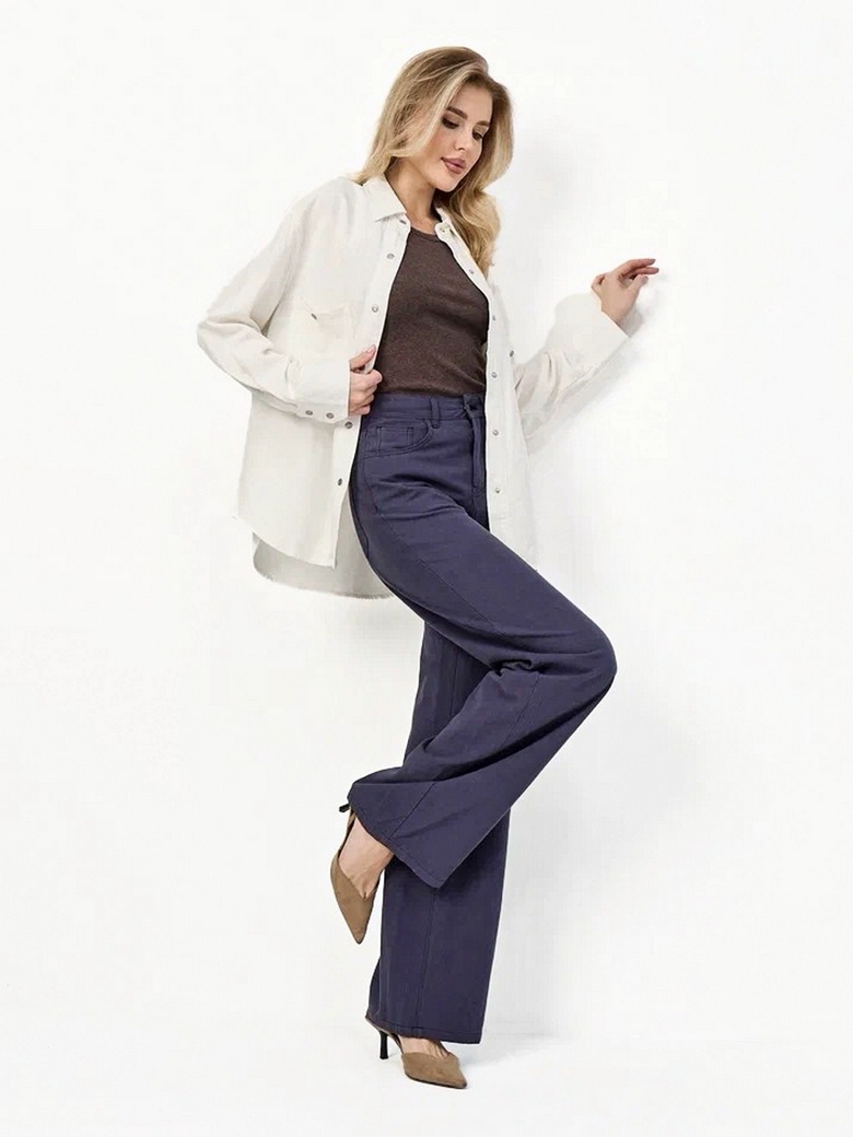 Летние широкие от бедра темно-синие женские брюки из облегченного хлопка (70%) со льном (30%), высокая посадка, цвет однотонный, 5 карманов. Наличие размеров уточняйте, особенно перед приездом в магазин.
