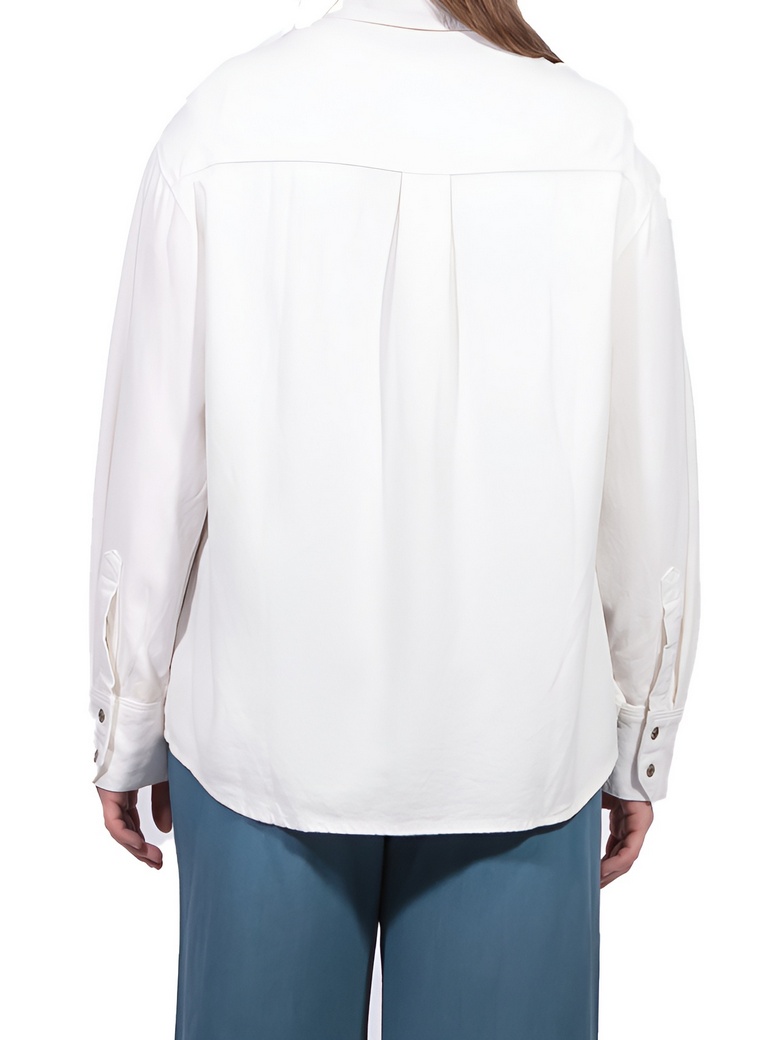 Женская летняя бежевая рубашка-оверсайз с длинным рукавом из облегченного хлопка (70%) со льном (30%), застегивается на кнопки, нагрудные карманы также на кнопках. Сочетается с льняными брюками Montana 10740 Navy и 10740 Marine. Наличие размеров уточняйте, особенно перед приездом в магазин.